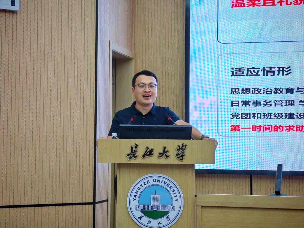 辅导员贺雄开展了“新生入学安全教育”专题培训,明确了请假、每日打卡流程、外宿等方面的管理要求,进行了交通、消防、防溺水等多方面的安全教育。