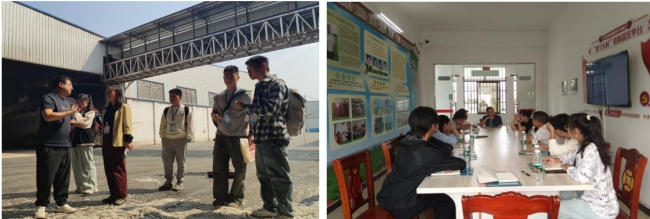 首先,调研团队来到了石首市新厂镇鑫飞达油业有限公司,鑫飞达油业有限公司是一家以油菜籽、棉花等农产品为原料实行加工增值,直接服务“三农”的国家高新技术企业、省级农业产业化龙头企业、湖北省省级农业产业化联合体。鑫飞达油业有限公司总经理张雨生详细介绍了鑫飞达油业产业联合体的运行机制,并带队参观了该公司的生产车间、仓储设施等。然后,调研团队来到了石首市高基庙镇百子庵村进行调研。百子庵村支部副书记介绍了本村基本情况。百子庵村采取“党支部+合作社+基地+农户”的模式创新开展鸭蛙稻产业模式,带动村民发展村集体经济,增加农产品附加值,促进村民增收。石首市霞松生态农业专业合作社负责人彭本发,介绍了鸭蛙稻产业发展与合作社建设情况。合作社推广“鸭、蛙”生物防治、“灭虫灯”物理防治等多种绿色防控集成技术,实现传统农业向绿色农业的转变,实现了显著的经济和生态效益。