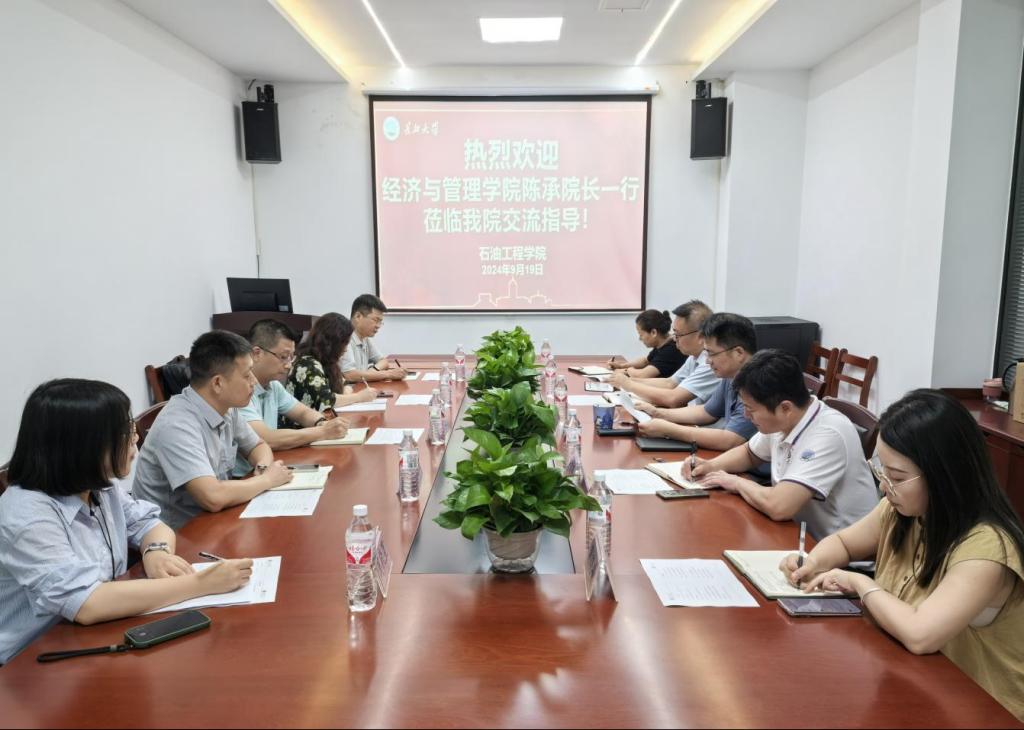 (通讯员 周欣星)9月19日,我院院长陈承、副院长裴潇、副院长王华强、副教授李洪文和周欣星博士等一行赴武汉校区石油工程学院交流。石油工程学院院长宇波、常务副院长李忠慧、副院长郑双进、副院长范梅英、学院办公室主任周晓峰等予以接洽。