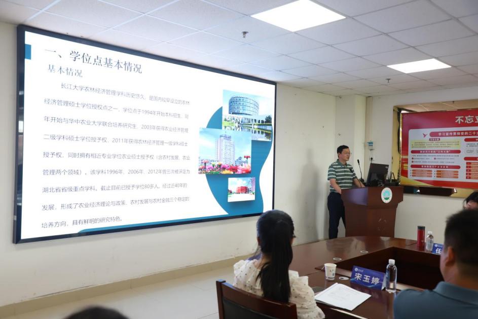 副院长何蒲明教授从农林经济管理硕士学位授权点基本情况、存在的问题和持续改进计划等方面详细汇报了我校农林经济管理硕士学位授权点的建设进展。