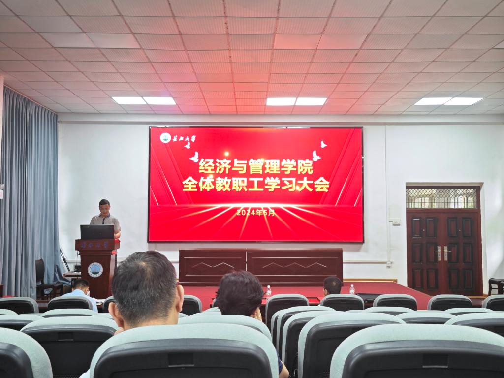 (摄影 涂雷 通讯员 贺雄)5月30日下午,学院在15号教学楼学术报告厅召开5月份教职工政治理论学习大会,学院全体教职工参加学习。学院党委书记樊帆主持会议。
