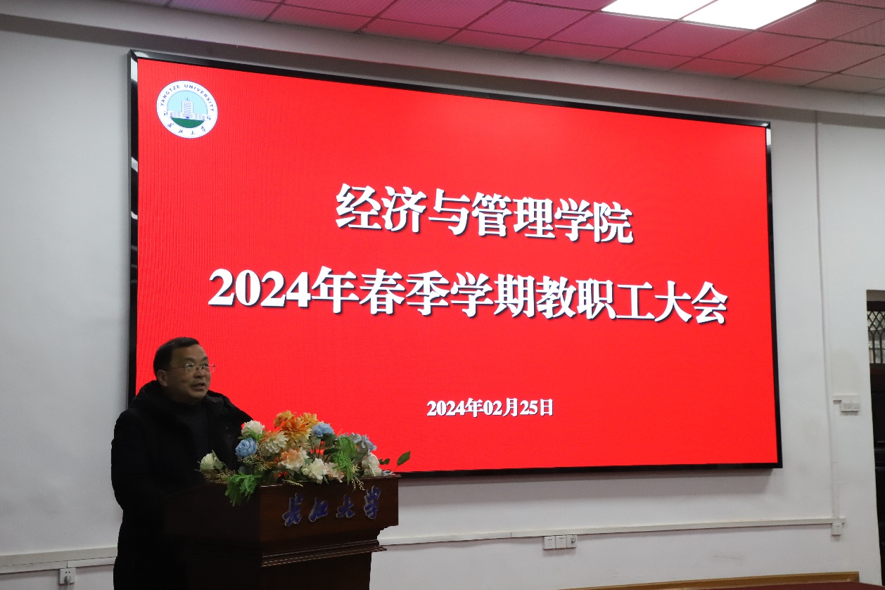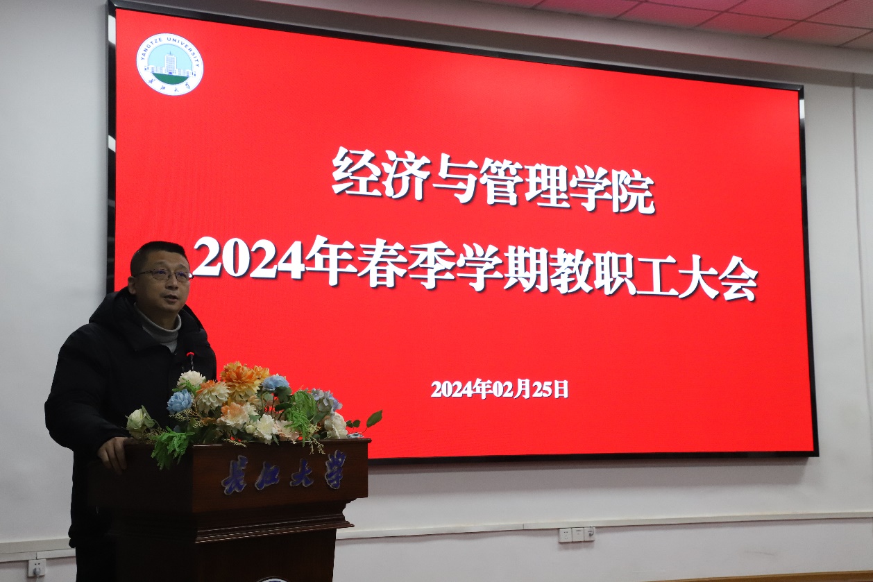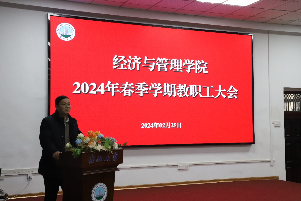 学院院长陈承传达了学校2024年工作研讨会议精神,并强调学科建设、科学研究、人才培养、高层次人才队伍建设是学院工作的重中之重。希望全体教职工提高认识、锚定目标、守正创新,主动作为,并发出号召:“我们要对接石油工程,对接学校其他优势学科,逐步实现‘经管+’,为争创一流经管学院而努力。”