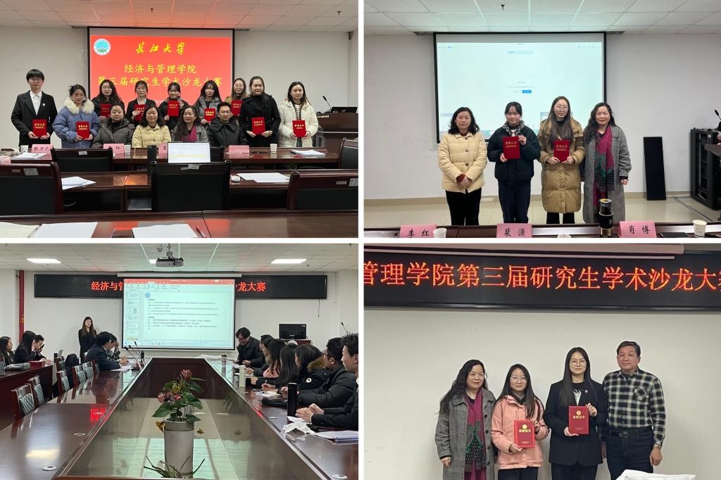 (通讯员:詹荣)2023年12月18日晚19点,williamhill中国第三届研究生学术沙龙大赛在文科楼505和605会议室同时举行。本次大赛分为经济组与管理组,每组又分为论文类和文献综述类,通过初审的20位同学入围参加答辩。大赛邀请汪发元教授、谢云副教授和孔令成老师担任经济组评委,李红副教授、肖博老师和张力元老师担任管理组评委,副院长裴潇受邀参加。