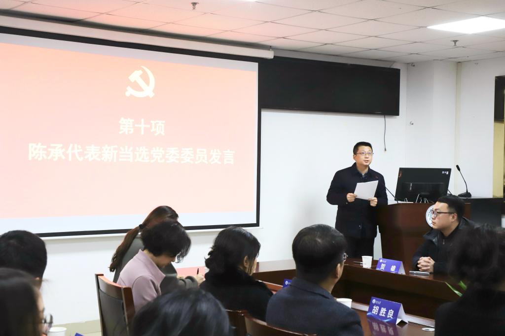 随后,陈承代表新当选的新一届党委委员发言。他表示,学院党委将以这次换届为新的起点,继续秉承“团结、务实、创新、奋进”的精神,坚持“以人为本,育人为先”的办学理念,坚持立德树人的根本任务。进一步强化学科建设,加强与社会各界的合作和交流,全面提升教育教学质量,培养更多具有竞争力和社会责任感的优秀人才。