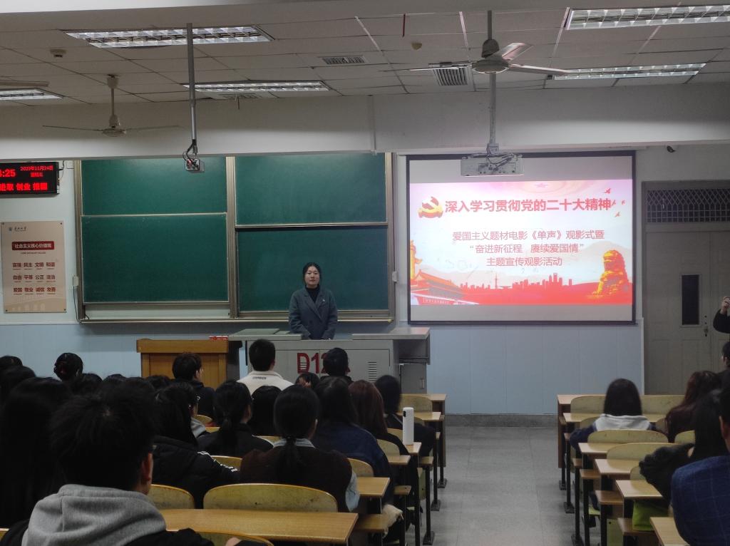 (通讯员:陶婧/文 肖扬/摄)为进一步弘扬爱国主义精神、厚植爱国主义情怀,2023年11月24日晚,williamhill中国组织师生在13教D123开展“奋进新征程 赓续爱国情”主题宣传观影活动,集中观看爱国主义题材纪录电影《单声》。