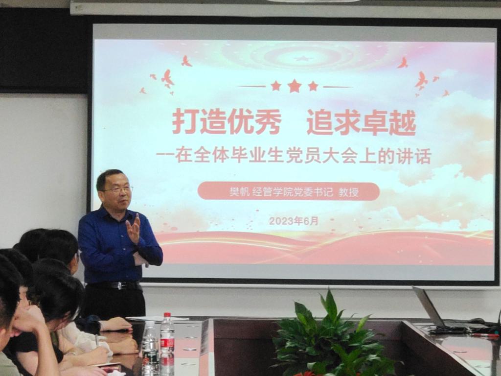 会上,樊帆首先说明了毕业生党员们在打造优秀的同时,要向更远的目标奋进,并依次从永葆政治性、先进性、持久性三个方面进行详细阐述。在谈到永葆共产党的政治性时,樊帆提出了时事政策一定要学习,青年党员要从政治上严格要求自己,并长期坚持下去,不能只图“一下子”。讲到永葆共产党的先进性时,他表示毕业生党员在学生时期先进,走进事业单位后也要保持先进性,一个党员就是一面旗帜,一个支部就是一座堡垒。党员同志要做出表率,起到先锋模范作用。而永远做一名合格的共产党员,是樊帆格外强调的一点,并表述了对毕业生党员的七种能力要求,其中重点讲述了调查能力的重要性,以毛主席的著作《湖南农民运动考察报告》举例展现了实事求是、调查研究是当下党员需要不断增强的能力。