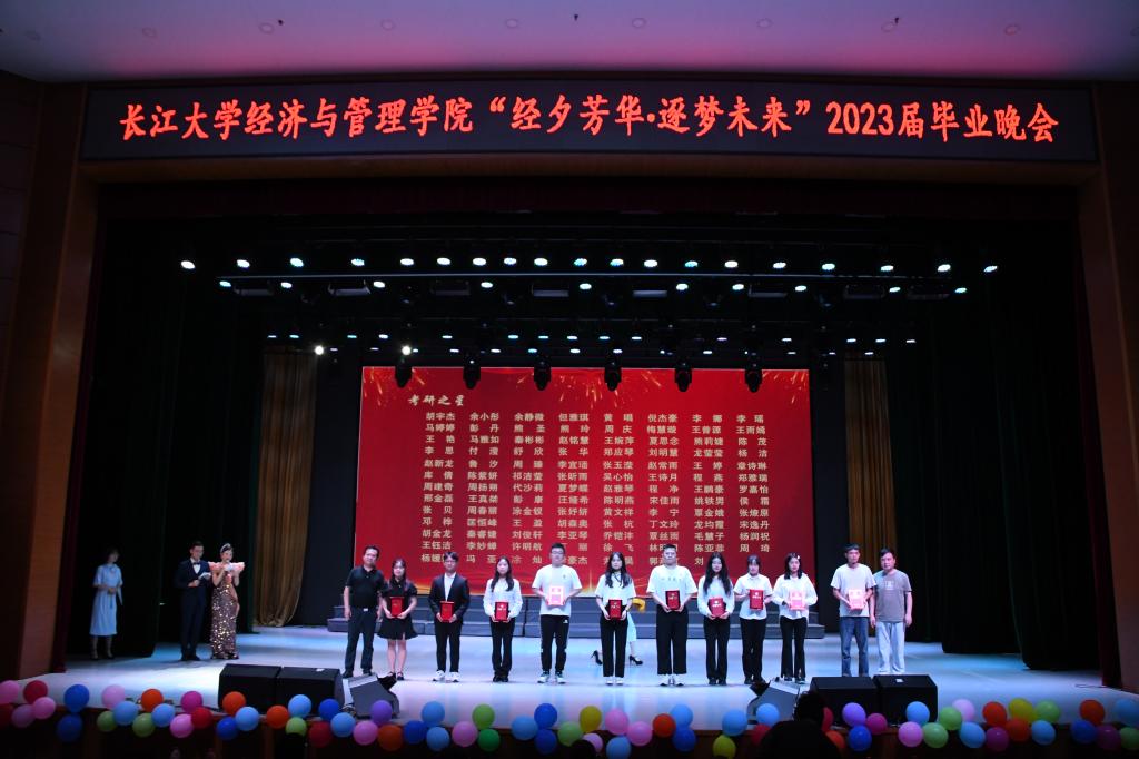 “当代中国青年生逢其时,施展才干的舞台无比广阔,实现梦想的前景无比光明。”经管学院院长徐辉在致辞中细数2023届毕业生在学科竞赛、考研、基层就业等方面取得的成绩,鼓励学生要心怀梦想、脚踏实地、追求自我提升。学院党委副书记王中梅宣读了表彰文件,对考研之星、优秀毕业生、奖学金获得者表示祝贺。