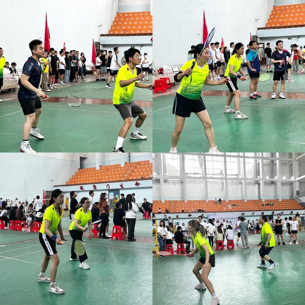 比赛分为小组循环赛和淘汰赛,采用混合团体赛制,按女双、男双、混双三个项目进行。5月27日上午八点,小组循环赛正式开始,组内队伍相互比拼,积分最高的两队晋级八强,我院选手饱含激情,在赛场上努力拼搏,挥洒汗水,最终以小组第一的好成绩成功晋级八强,进入下午的淘汰赛。