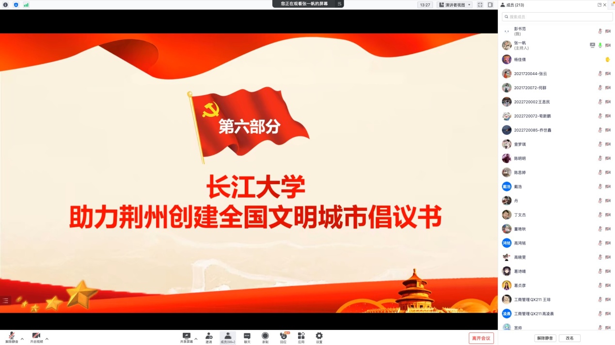 (通讯员:彭书范)3月22日晚7点,williamhill中国开展三月份政治理论学习活动,本次活动由研究生会组织部和21级团支部组织开展,通过腾讯会议的方式线上召开,我院全体研究生参与本次会议。