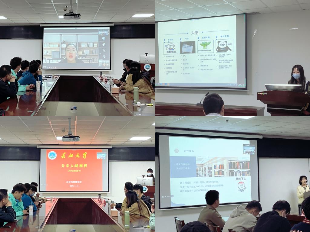 (通讯员:付玉婷、张悦)11月4日晚,我院2022级研究生新老生交流会在文科大楼505、605会议室采用线上与线下结合方式顺利举行,22级全体研究生及八位优秀学长学姐参与了本次会议,辅导员朱翠玲老师、黄承石老师受邀参会。