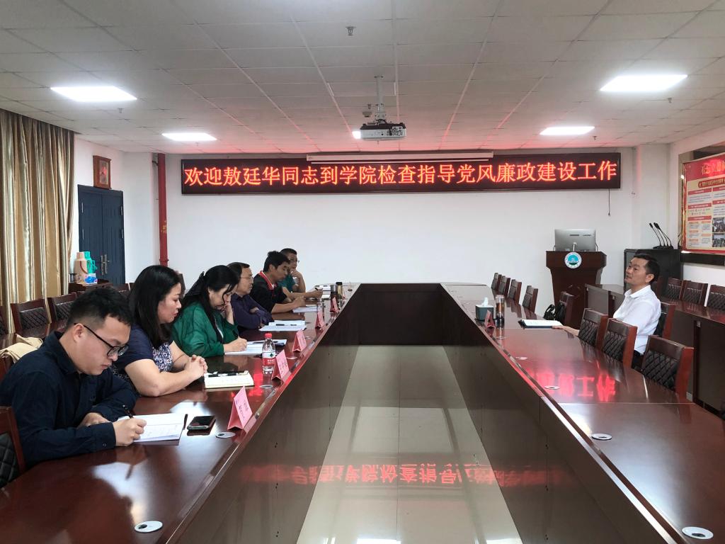 (摄影:彭蓉 通讯员:贺雄)9月21日下午,校党委副书记敖廷华到我院检查指导党风廉政建设工作,并与学院领导班子展开座谈。全体在校院领导参加座谈。
