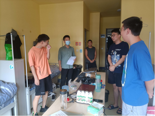 安全问题重于一切,黄老师在熟悉新同学的同时也在强调寝室安全问题。劝诫同学们在寝室禁止使用大功率违规电器、禁止饮酒,不随意搭接插座。提倡同学们不在寝室抽烟,制定寝室公约等。鼓励同学们走出寝室,走进操场。