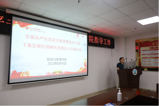 会议尹始,院党委书记樊帆代表学院做全面从严治党工作汇报。第一部分,樊帆书记介绍了学院的基本情况。第二部分,围绕着贯彻落实习近平总书记重要讲话精神及党中央决策部署和省委工作要求、全面从严治党主体责任清单制定和党风廉政风险自查自纠、意识形态工作领域、常态化疫情防控和安全稳定情况、形式主义和官僚主义问题自查这个五个方面展开汇报。第三部分,就学院目前存在的问题及整改情况做了阐述。随后,徐辉院长就如何从全面从严治党落实到具体人、具体事,进行了补充汇报。
