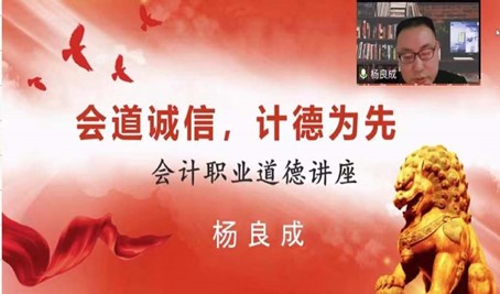 (通讯员:刘畅)2021年12月19日上午10:00,williamhill中国邀请湖北省会计领军人才、中南财经政法大学合作硕士导师、五方光电上市公司杨良成财务总监,通过线上方式做了题为“会道诚信,计德为先”的讲座。此次讲座是学院首批MPAcc《商业伦理与会计职业道德》课程建设项目的一次改革尝试,通过引入实务专家进课堂,从现实观察和实践认知的角度强化学生对课程知识的理解和掌握,以达成学生对商业伦理原则和会计职业道德规范的“内化于心、外化于形”。此次会议由《商业伦理与会计职业道德》课程建设项目负责人陈承教授担任主持。
