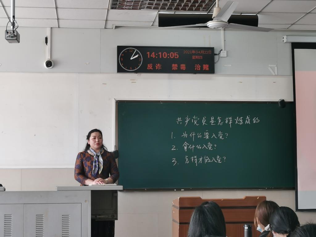 紧接着,王书记依次提出“为什么要入党”、“拿什么入党”和“怎样才能入党”三个问题。王中梅副书记从对党的认同感和爱国情感方面引导大家思考自己的入党动机;她阐述了个人在能力、道德品质和实践三个方面应具备的成为党员的素质以及大学生在学校生活中应拿出的具体行动。