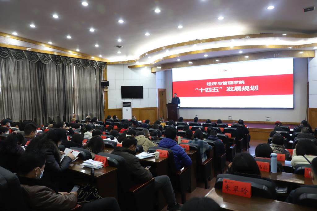 随后,徐辉院长对2020年学院各项工作进行了总结,并对学院在2020年取得的成绩给予了肯定,感谢全院教职工对学院领导班子工作的支持以及对学院发展所作出的贡献。同时徐辉院长从形势分析、指导思想、发展目标、主要任务、发展举措等5方面详细地解读了学院制定的“十四五”发展规划。他强调,2021年是“十四五”规划的开局年,学院要以习近平新时代中国特色社会主义思想为指导,深入贯彻落实习近平总书记关于教育的重要论述和全国教育大会的精神,秉持学校“三尊三学”的办学理念,以以德树人为根本,以服务地方经济发展为使命,按照“凡事三有”的原则,全面深化综合改革,不断追求进步,培养一流人才,产出一流成果,作出一流贡献,使学院总体办学水平再上新台阶。