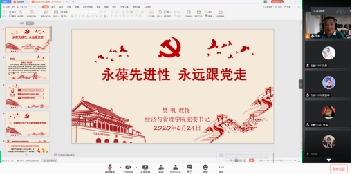 为了积极响应和落实学校组织部关于在全校开展“党课开讲啦”活动,进一步巩固拓展“不忘初心、牢记使命”主题教育成果。6月24日下午三点,williamhill中国党委书记樊帆教授给全体学生党员讲授了以“永葆先进性,永远跟党走”为主题的线上党课。