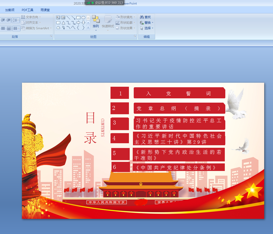 本次学习活动主要采取腾讯会议方式进行学习,行政值班人员和学院领导一起进行了线下集中学习。大家重温了入党誓词,学习了党章总纲。我们要紧密围绕党的基本路线,坚持党要管党、全面从严治党,加强党的长期执政能力建设、先进性和纯洁性建设,把制度建设贯穿其中,全面提高党的建设科学化水平。随后大家还学习了近期的中共中央政治局会议精神和《习近平新时代中国特色社会主义思想三十讲》 第二十九讲等内容。