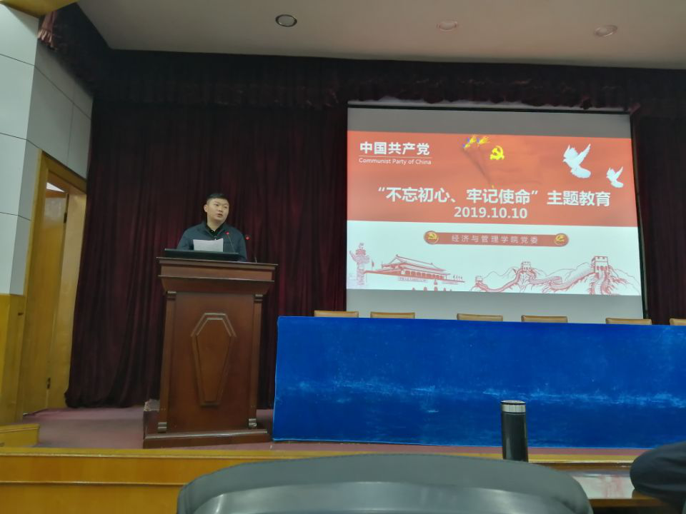 随后党委副书记王中梅对全体教职工开展“不忘初心、牢记使命”主题教育报告。她指出全体党员要自觉地做到坚定政治信仰,相信党拥护党;要净化政治生态,保持初心。此外,她还希望全体教职员工能做到不忘初心、牢记使命,聚焦学院的任务目标,确保学院的建设,让学院发展得更好。