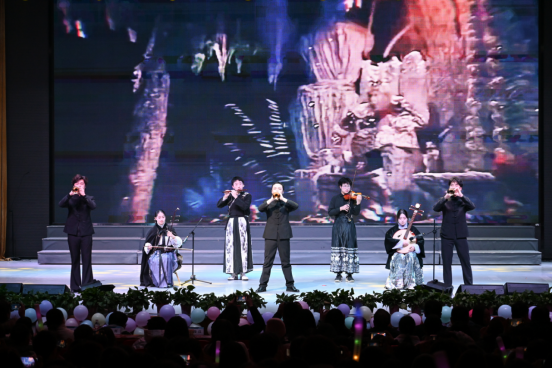 晚会现场,歌曲串烧《sing for you》姿踏响青春韵律,尽显风华正茂;小品《时间都去哪儿了》聚焦生活点滴,以细腻真实的表演,触发同学们对大学生活的思考;古典舞《美人关》刚柔并济,舞步间彩袂翩跹,领人深入“春风拂槛露华浓”之色;器乐合奏《西游记》别出心裁,旋律中经典新呈,中西和韵给人全新的听觉震撼;师生携手带来的《美丽中国》向观众诠释着,青春就是一场怀揣希望、勇毅逐梦的光辉旅程。多样的艺术形式、精彩的节目内容,让全体师生共同沉浸在这场歌舞的盛宴之中。