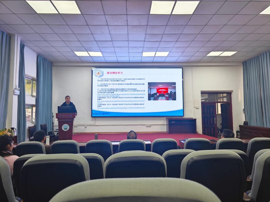 会议伊始,学院党委副书记平先锋领学了习近平总书记在湖北考察的行程和重要讲话内容。他指出,习近平总书记在湖北孝感、咸宁、武汉等地的考察中,强调了湖北要深入贯彻党的二十大和二十届三中全会精神,坚持稳中求进工作总基调,充分发挥自身优势,奋力谱写中国式现代化湖北篇章。这些重要指示,不仅为湖北的发展指明了方向,也为学院的发展提供了根本遵循。