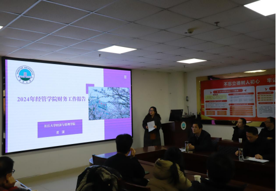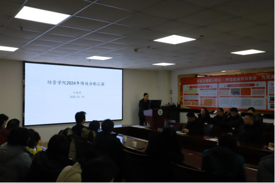 随后,副院长裴潇作2024年度学院财务工作报告,她详细介绍了学院年度经费使用情况、学院创收情况、学院经费使用过程中存在的问题以及下一步的改进方向等内容,党委副书记平先锋作分工会总结暨工会财务收支汇报,他详尽细致地回顾了学院年度工会各项活动开展情况,并介绍了工会各项财务收支情况。副院长何蒲明介绍了学校绩效分配政策,并对学院绩效分配原则与细节进行了详尽的解释与说明。