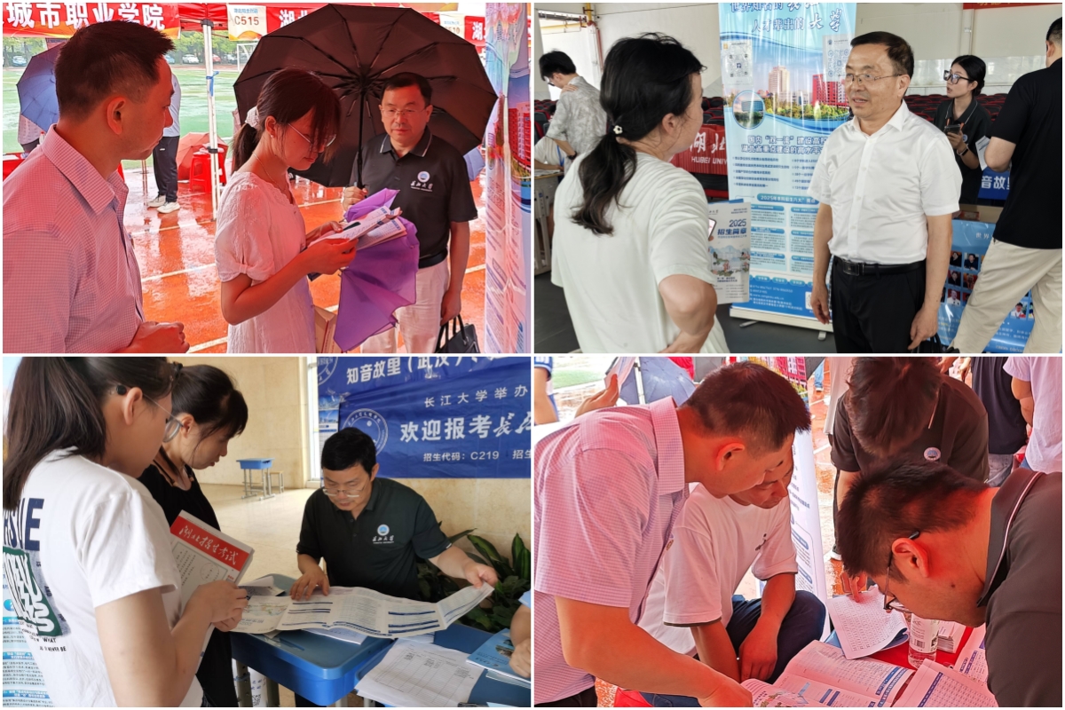 在学校和学院的指导下,学院副院长何蒲明、副院长王华强、党委副书记平先锋及其他工作组成员分别到赤壁一中、黄州区一中、黄冈中学、浠水一中、崇阳一中、通城一中等中学开展招生宣传活动。期间,多变的天气增加了工作难度,但工作组全体成员始终展现出积极的精神风貌和高效的业务水平。在咨询展位前,宣传组成员热情接待络绎不绝的考生和家长。他们耐心细致地解答了各专业录取分数线预估、专业内涵与发展方向、课程体系特色、转专业政策、辅修与双学位机会、奖助学金体系、校园生活环境、未来职业发展路径等具体问题,并发放了最新的招生简章,供考生和家长深入了解。