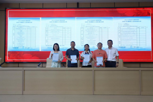 据悉,为确保学院在学科评估、科研成果转化、人才培养质量等核心领域持续突破,学院创新实施“目标导向+过程管理”机制,制定了涵盖教学、科研、社会服务等多维度的量化考核体系。举行教师目标责任状签约仪式和挂牌活动,是学院目标管理考核和教师聘期考核协同推进的创新举措。