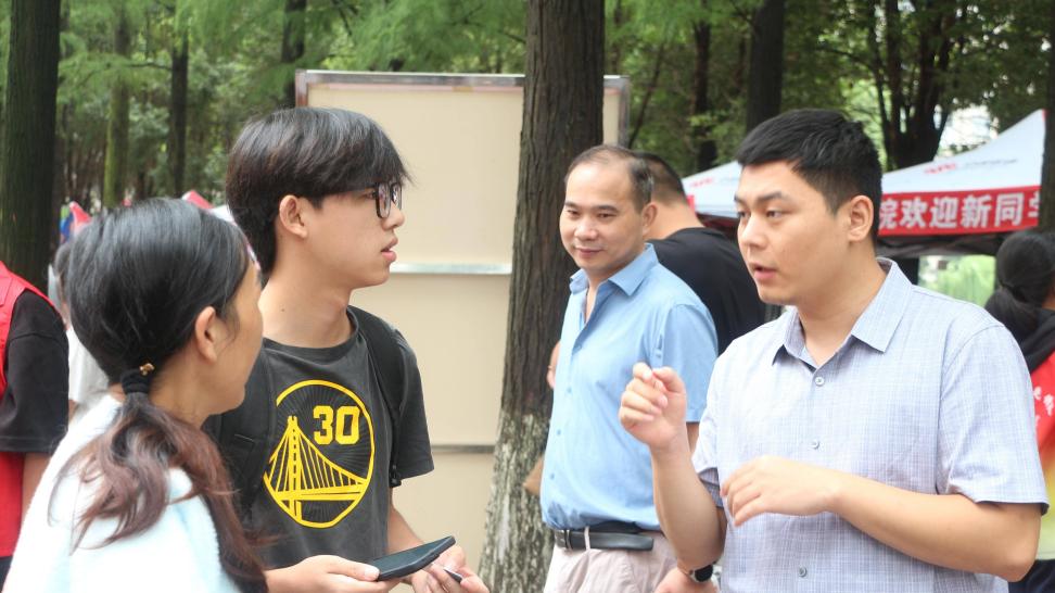 学院辅导员郭俊、李云妮、杨雪、李镇、娄君庭和班主任老师全程值守,从专业介绍到生活建议,细致解答着新生和家长的疑问,用严谨与温情为新生保驾护航。