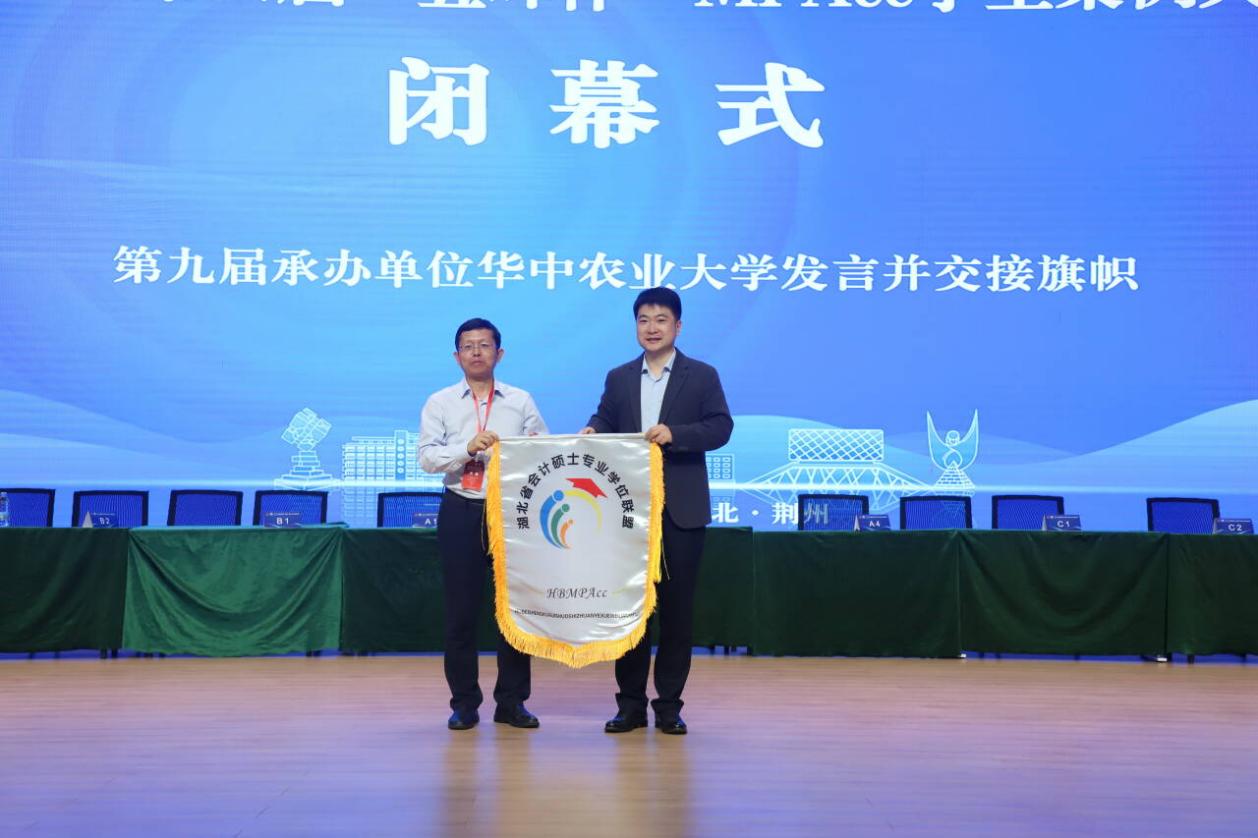 4月26日下午,大赛闭幕式在薪火多功能厅举行,williamhill中国院长陈承主持仪式。湖北省会计硕士专业学位联盟秘书长龙子午教授作总结致辞,并向第九届承办单位华中农业大学授旗,华中农业大学williamhill中国副院长李剑接旗并发言。