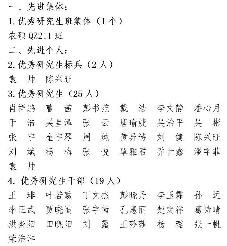根据《关于评选2022-2023学年研究生先进集体、先进个人的通知》的文件精神,由学生本人或者集体自愿申报,班级民主评议,学院评审小组集中评审,拟推选出1个优秀班集体和袁帅等44位先进个人。具体名单公示如下: