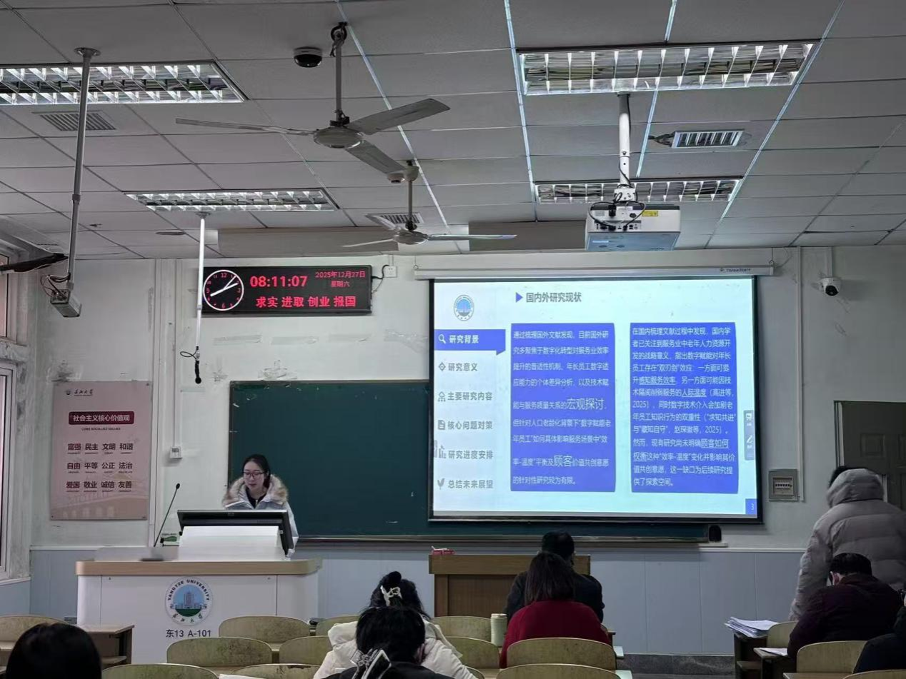答辩过程中,答辩学生按照既定流程,通过PPT汇报的形式,围绕选题背景与意义、国内外研究现状、研究目标与内容、研究思路与方法、创新点、预期成果及进度安排等核心内容展开阐述。答辩老师从论题的可行性、研究思路、研究方法等方面进行审核,结合学生汇报内容,进行了细致入微的专业指导。并对研究问题不聚焦、研究方法和手段不够全面及论文创新性等方面给出了意见和改进建议,为学生们后续的研究工作指明了方向。