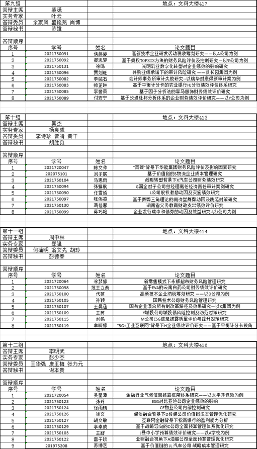 二、答辩分组安排: