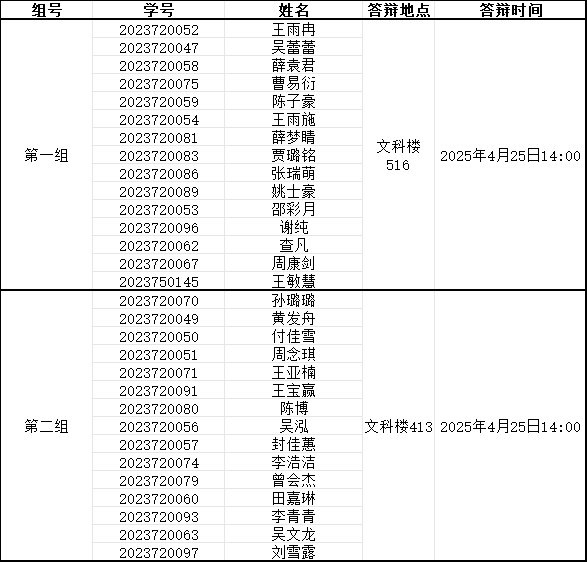 答辩小组分组安排