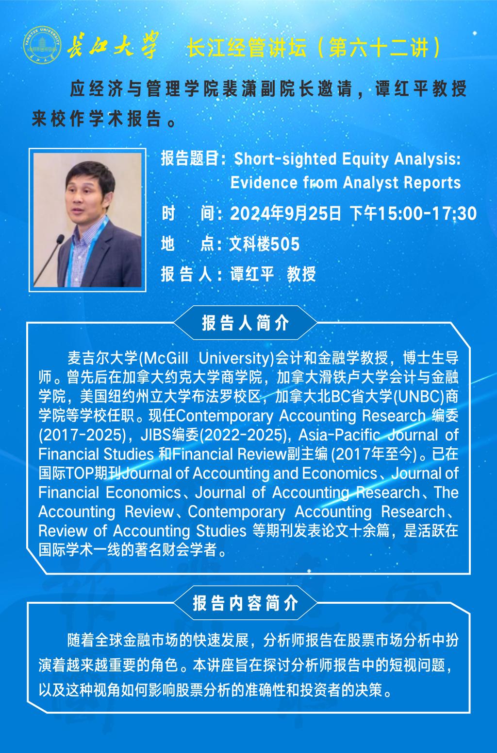 长江经管讲坛(第六十二讲)