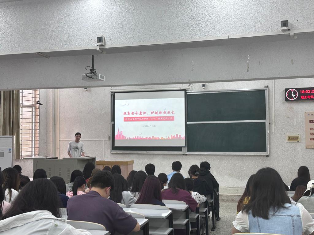 (通讯员:金小晶)“五一”假期临近,经管学院积极响应学校号召,开展五一假期安全专题教育活动,旨在加强学生假期安全管理,关注学生安全问题。