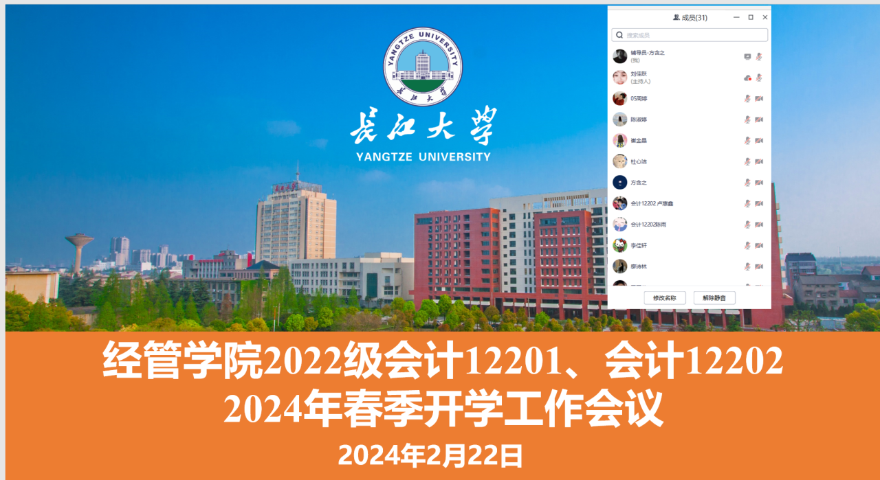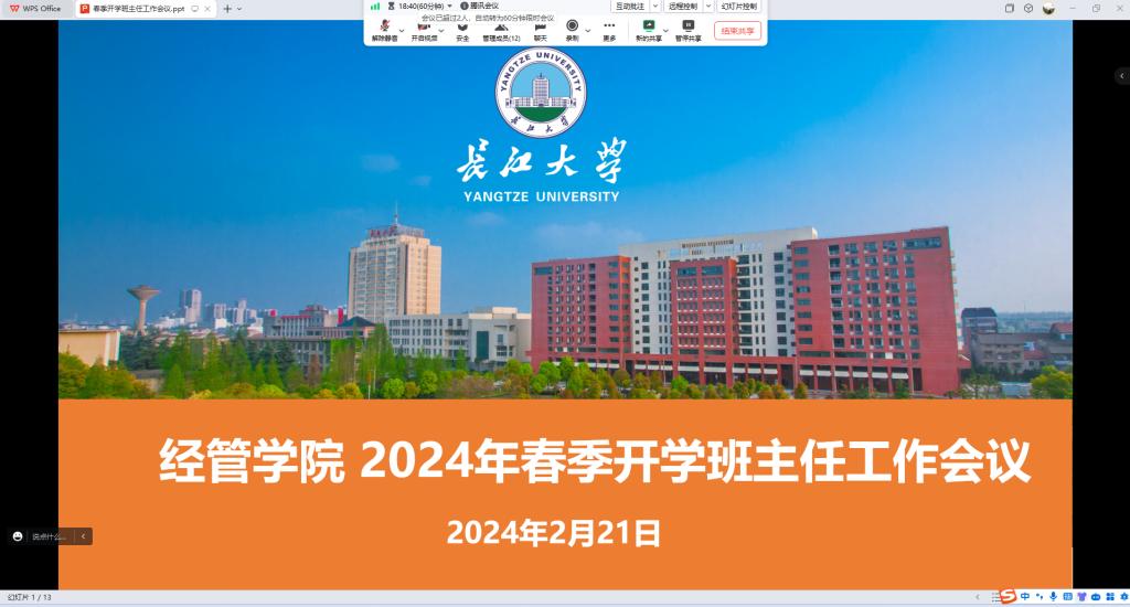 为积极应对冰冻雨雪天气,确保春季开学工作平稳有序,根据学校通知要求,2月21日下午15点,williamhill中国在线上召开了新学期第一次班主任工作会议,会议由学院党委副书记平先锋主持,学院领导班子和全体班主任参加了会议。