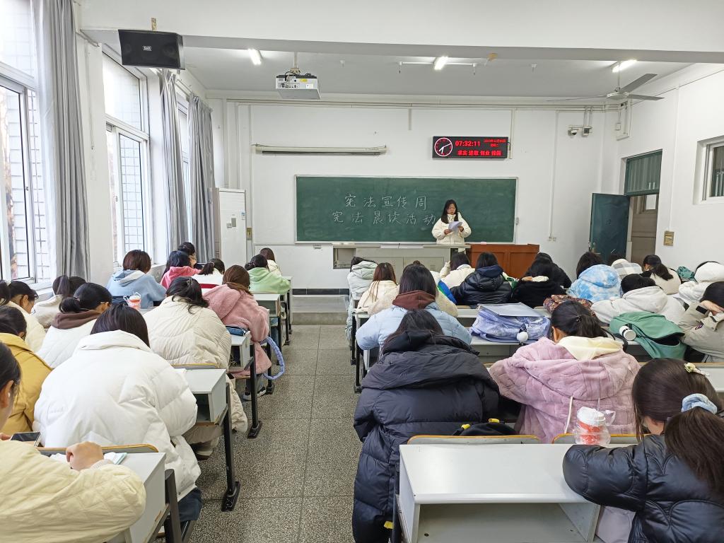 前期,学院已经认真组织了全体学生参加第八届全国学生“学宪法、讲宪法”活动。经过广泛宣传,积极组织,各班级在本周利用早晚自习和课间活动时间,开展了《宪法伴我们成长》歌曲传唱和国家宪法日“宪法晨读”活动。师生还一起学习了习近平法治思想、习近平总书记关于宪法的重要讲话和重要指示批示精神,学习了宪法、民法典、行政复议法、教育法律法规和未成年人保护、爱国主义教育等相关法律知识。
