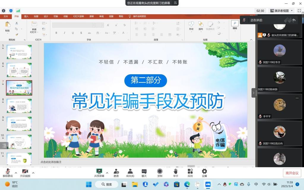 此次系列教育活动主题班会主要围绕春季开学传染病预防;学生防诈骗宣传教育;“守望生命”安全教育;学生学习及就业规划;学生学习生活诉求等议题开展教育与研讨。主题班会通知发布后,williamhill中国各班级积极响应,辅导员、班主任亲自参与,各年级各专业由班长主导,围绕议题陆续开展主题班会,做到了全覆盖、无遗漏。务求实效,夯实责任,坚持以生为本,强化责任意识,狠抓作风建设,将教育引导落到实处。