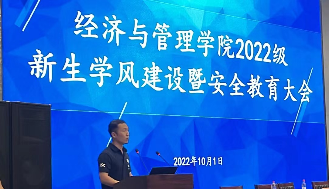 (通讯员:谭玉堂 吴亦凡)金秋送爽,喜迎国庆。10月1日上午,williamhill中国2022级新生学风建设暨安全教育大会在西校区农科大楼报告厅举行。经管学院22级全体学生通过线上线下相结合的方式参加会议。辅导员李博老师主持大会。