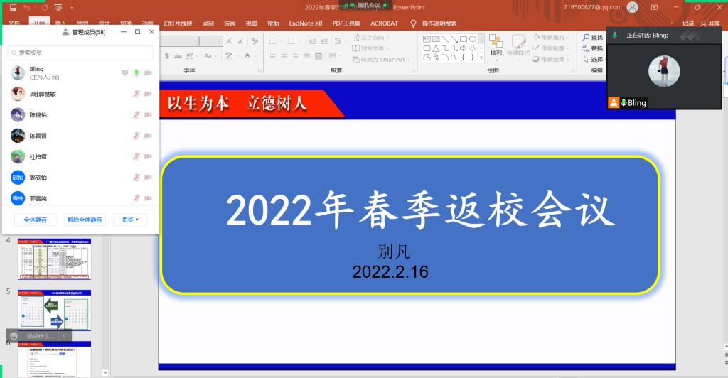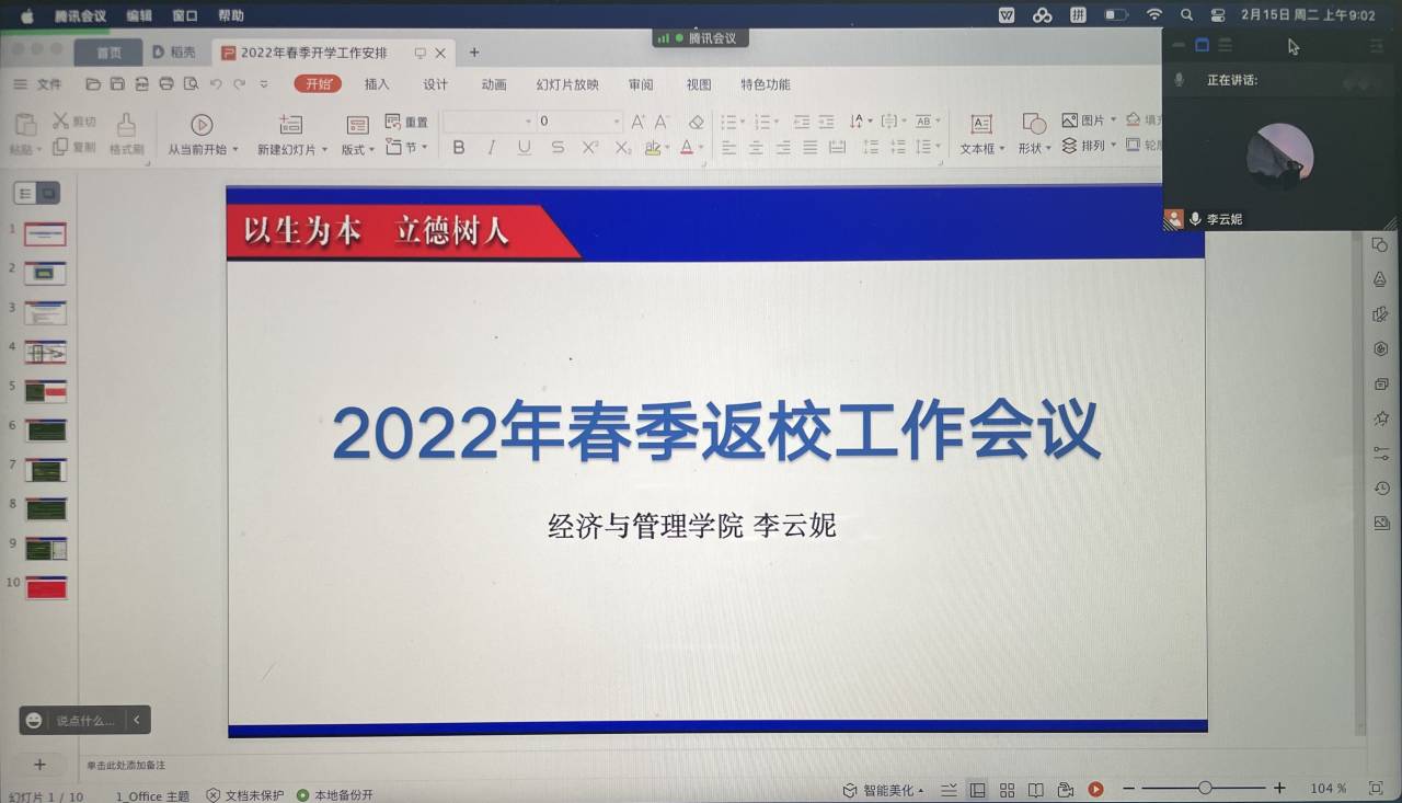 为加强学生日常安全教育管理,进一步做好疫情防控工作,确保开学以后全体学生的平安,经管学院以班级为单位,通过线上会议的方式召开了2022年春季学期的安全教育主题班会,班主任和辅导员参加了会议。