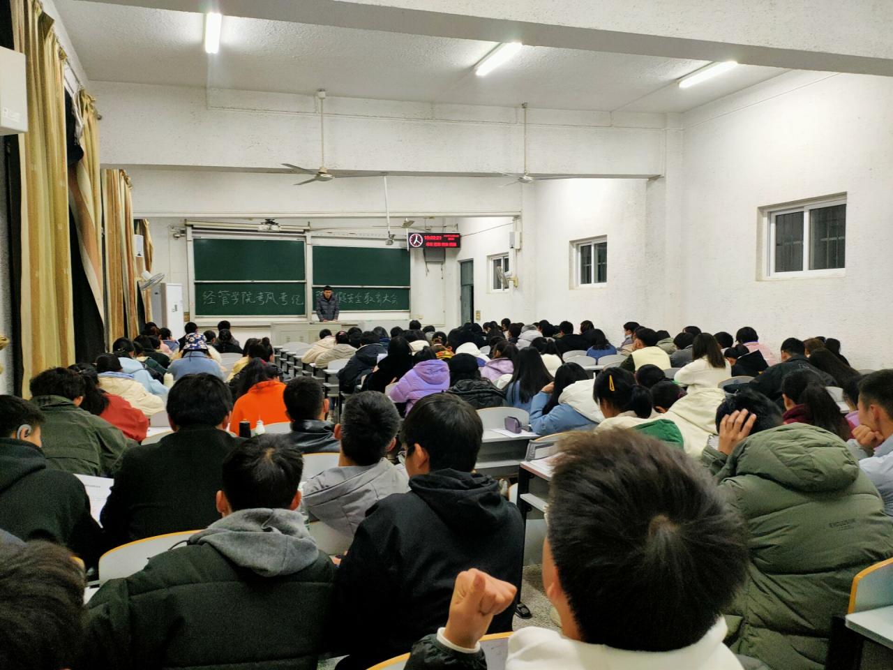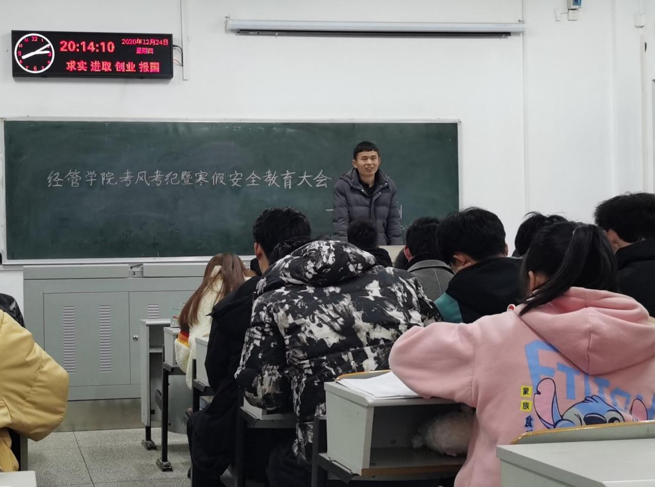 (通讯员 蒋晓涵)12月24日晚19时,williamhill中国管理工程类和农经类专业2020级新生在西校区7教501教室,召开了本学期考风考纪暨寒假安全教育大会,会议由辅导员叶星老师主持。