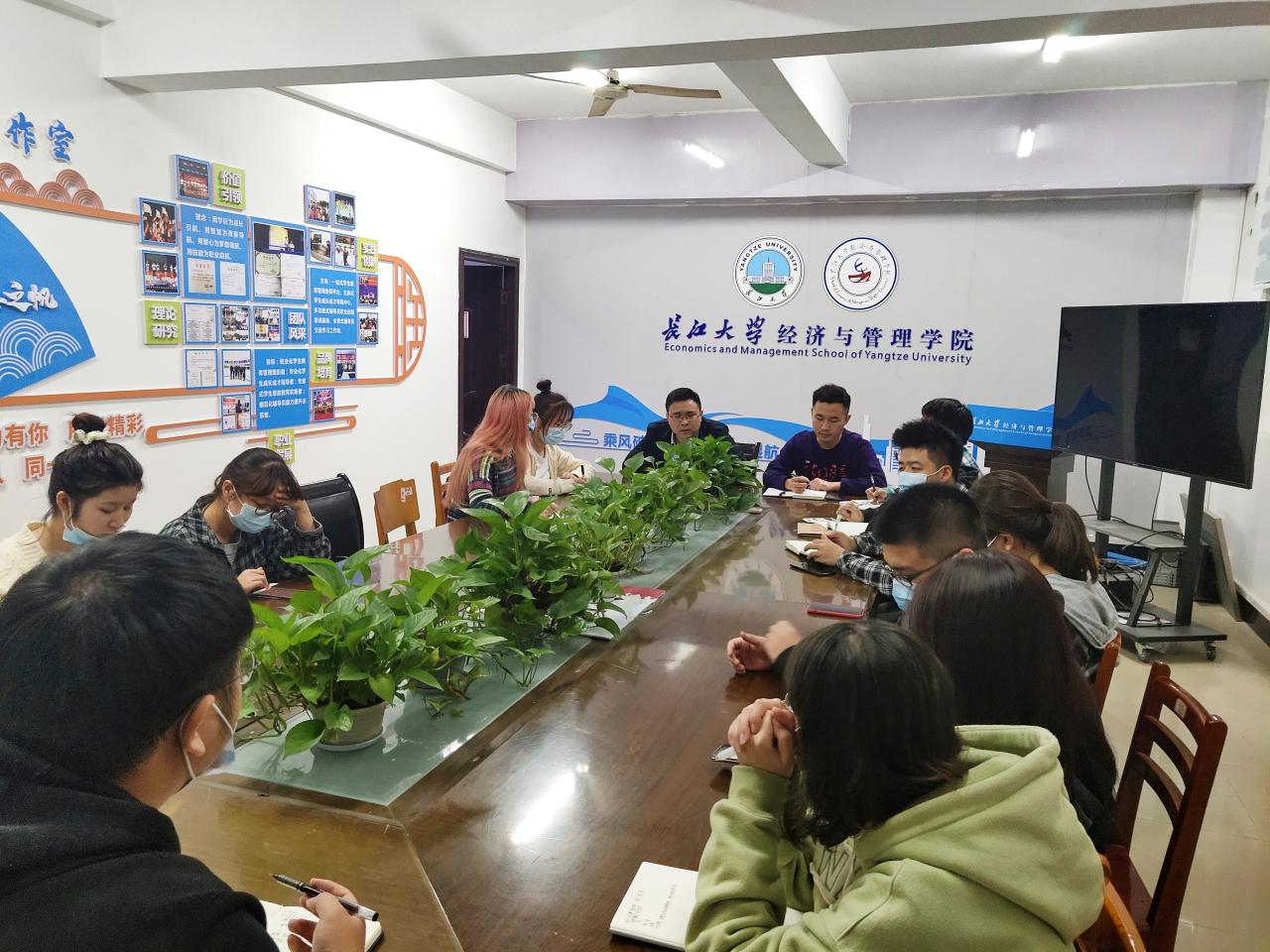 会议伊始,李博老师强调了每日健康打卡工作的重要性,要求同学们务必每天按时打卡、上报体温情况,主动配合学校疫情防控常态化管理。他说道,希望同学们严格落实“常态化疫情防控‘543’”要求,遵循“非必要不离校”原则,离校必须办理请销假手续”。在选课事宜上,李老师强调了选课的重要性,提醒同学们按时选课。