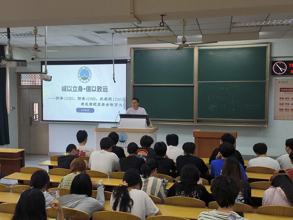 (通讯员 李艺德)为进一步加强学风建设,强化学生诚信应考意识,根据学校要求,经管学院多举措推进考风考纪教育工作,筑牢诚信应考防线。