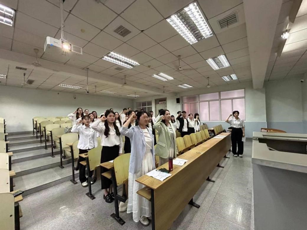 会议第五项:支部书记发言。首先,支部书记任玉婷对以上八位同志表示热烈祝贺和欢迎,肯定八位同志在作为发展对象、预备党员期间的优秀表现,鼓励他们继续保持初心,始终以优秀党员的标准激励自己,努力学习、不断进步。最后,她要求支部全体党员同志要自觉加强政治理论学习,认真学习并贯彻《中国共产党纪律处分条例》,坚持用《条例》来严格要求自身,积极在学习、生活和工作中发挥党员的先锋模范作用。