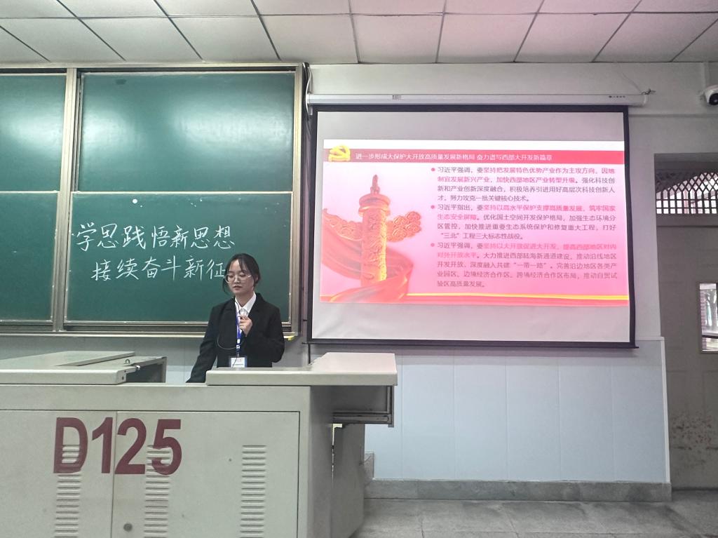 本次学习内容共有六点,主讲人带领全体同学,依次认真学习了以下内容:1.中共中央政治局召开会议 决定召开二十届三中全会 中共中央总书记习近平主持会议;2.习近平在重庆考察时强调 进一步全面深化改革开放 不断谱写中国式现代化重庆篇章;3.习近平主持召开新时代推动西部大开发座谈会强调 进一步形成大保护大开放高质量发展新格局 奋力谱写西部大开发新篇章;4.习近平在视察陆军军医大学时强调 面向战场面向部队面向未来 努力建设世界一流军医大学的内容;5.《中国共产党纪律处分条例》第1—7章;6.《湖北省科学技术进步条例》(2024年3月27日修订)。通过学习,同学们深刻认识和理解党的新思想,进一步增强了努力成长为社会主义建设者和接班人的责任感和使命感。