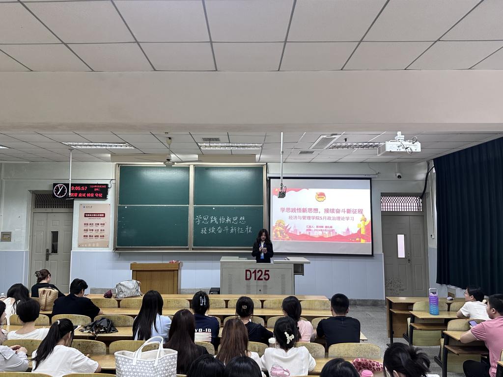 (通讯员 郑婉君)为深入学习贯彻习近平新时代中国特色社会主义思想,进一步增强“四个意识”、坚定“四个自信”、做到“两个维护”,提升我院研究生政治理论素养,深刻认识和准确把握党的二十大重大主题、重大理论观点、重大战略思想,2024年5月28日19:00,williamhill中国在13教D-125教室开展了研究生五月政治理论学习。本次学习以“学思践悟新思想,接续奋斗新征程”为主题,由我院2023级研究生章诗琳和唐礼蝶同学担任主讲人,全体2023级研究生到场参会。