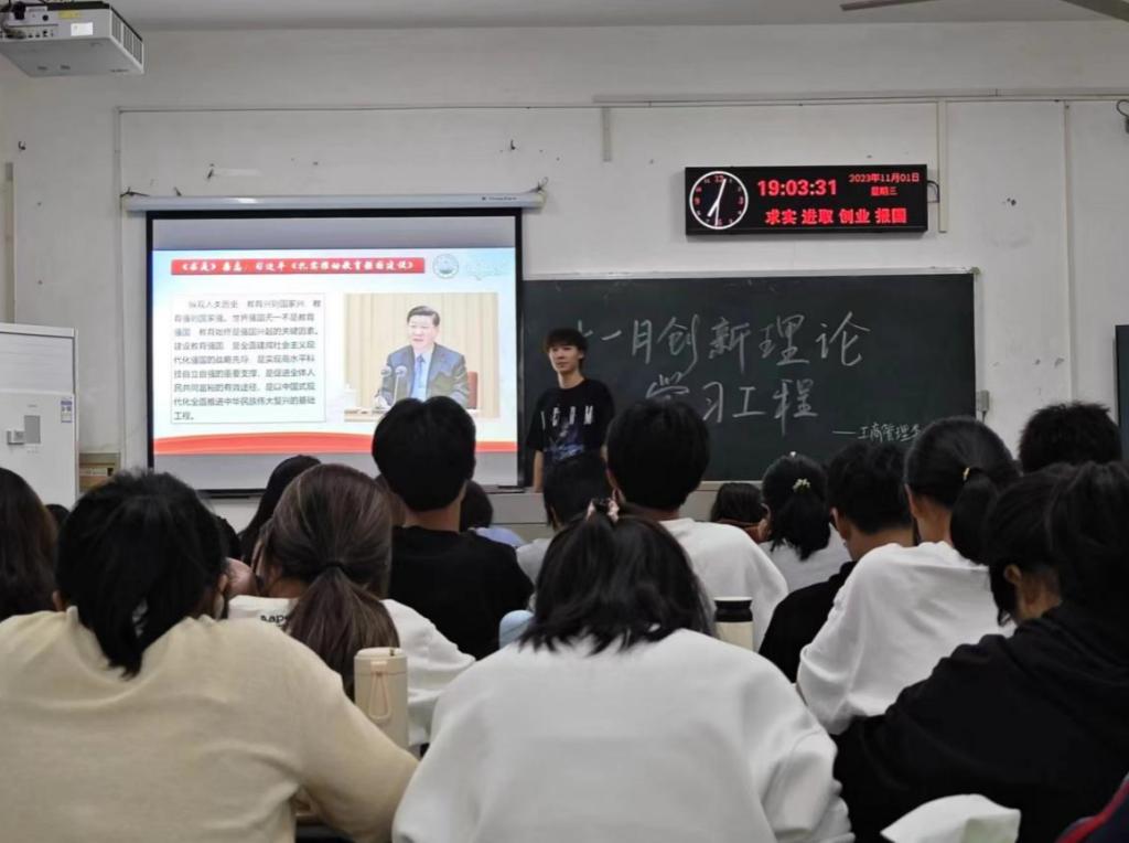 (通讯员 孟宪锦弘)为深入开展学习贯彻习近平新时代中国特色社会主义思想主题教育,2023年11月,williamhill中国组织85个本科生班级2725人学习习近平总书记关于高等教育改革发展稳定一系列重要指示批示、考察高校重要讲话、给师生重要致信回信精神,把党的创新理论学习工程贯穿学院师生学习、工作全过程。本次创新理学习工程活动主要采取“集中学习+自主学习”的方式,通过组织主题班会、专题党课的形式,推动党的创新理论学习入脑入心,走深走实,真正做到“学、思、传、行”相统一。