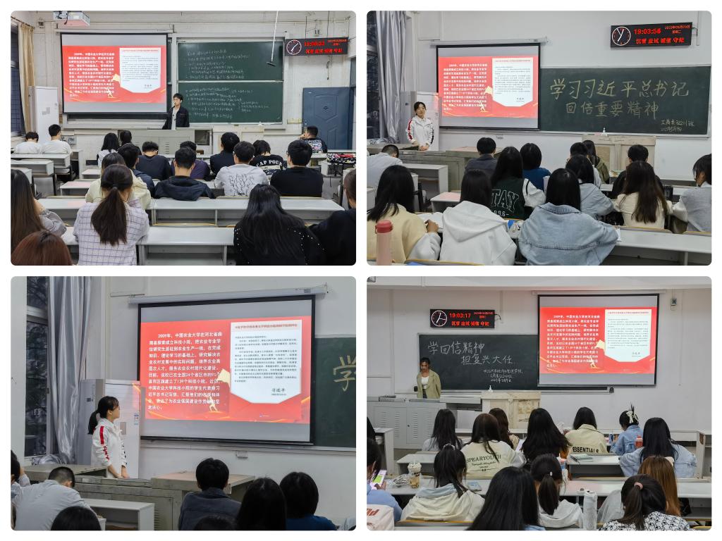 (通讯员 孟宪锦弘)2023年5月8-10日,williamhill中国组织本科生班级学习热议习近平总书记给中国农业大学科技小院的学生回信精神。习近平总书记的重要回信精神的学习活动以主题班会及讨论会的形式,线上线下同步开展。主题班会,在辅导员老师的带领下,由各班团支书认真领读习近平总书记给中国农业大学科技小院的学生回信,会上同学们纷纷发言讨论与热议回信精神,并分享学习体会。此次活动收到了良好的学习效果,并在学院师生中引起强烈反响。