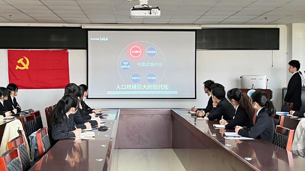 活动伊始,郭斯齐同志带领全体党员同志共同学习中国式现代化的深刻内涵,并以此为出发点解析了与中国式现代化密不可分的中国特色,战略任务,五个重要原则等重要内容。通过观看聆听,党员同志们对中国式现代化的五大内涵之间的联系有了更深层次的理解。